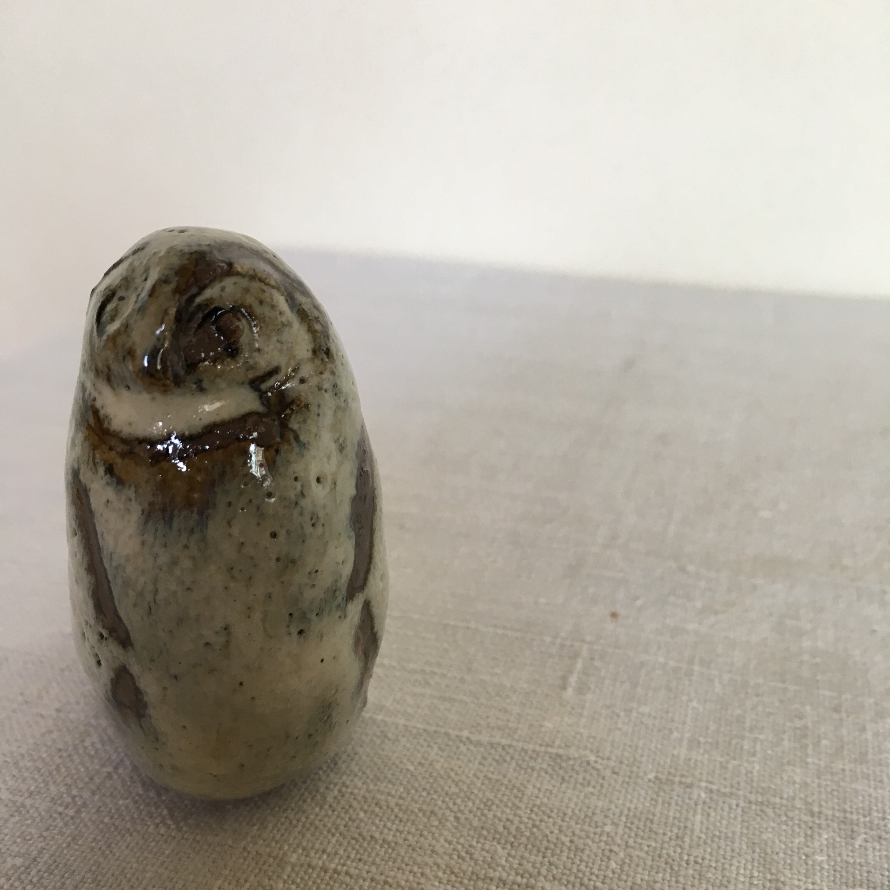 味のあるふくろうの焼き物の笛です