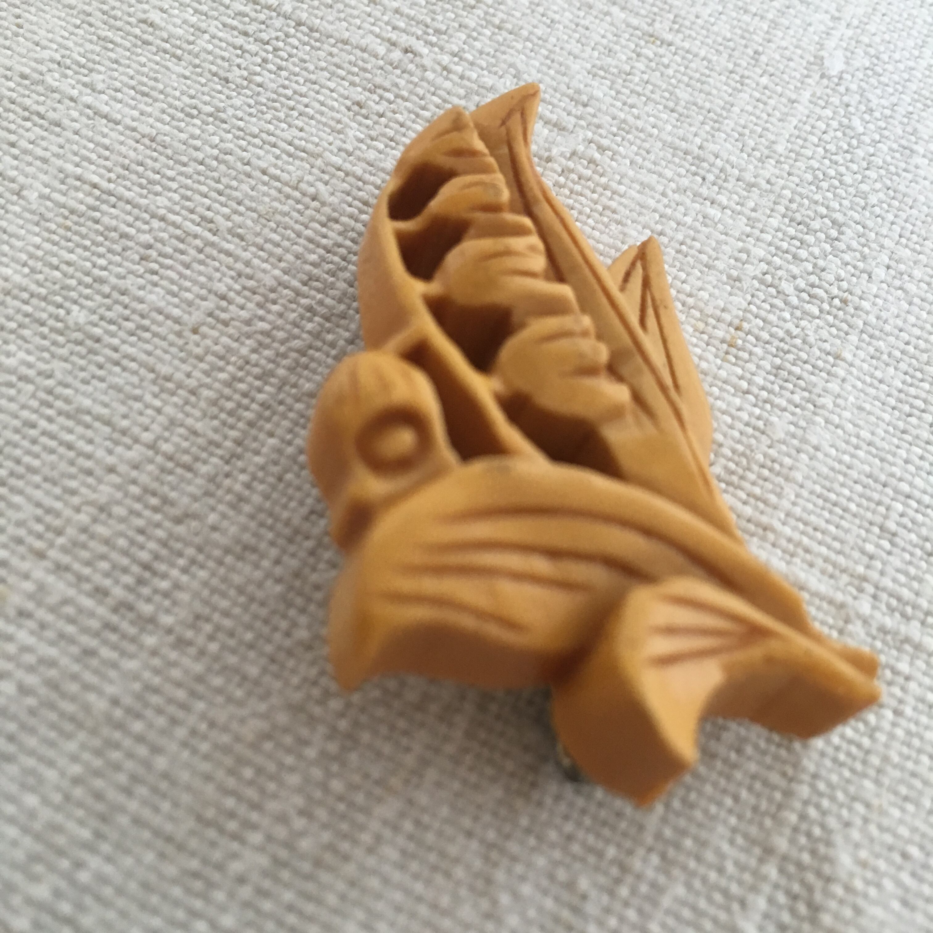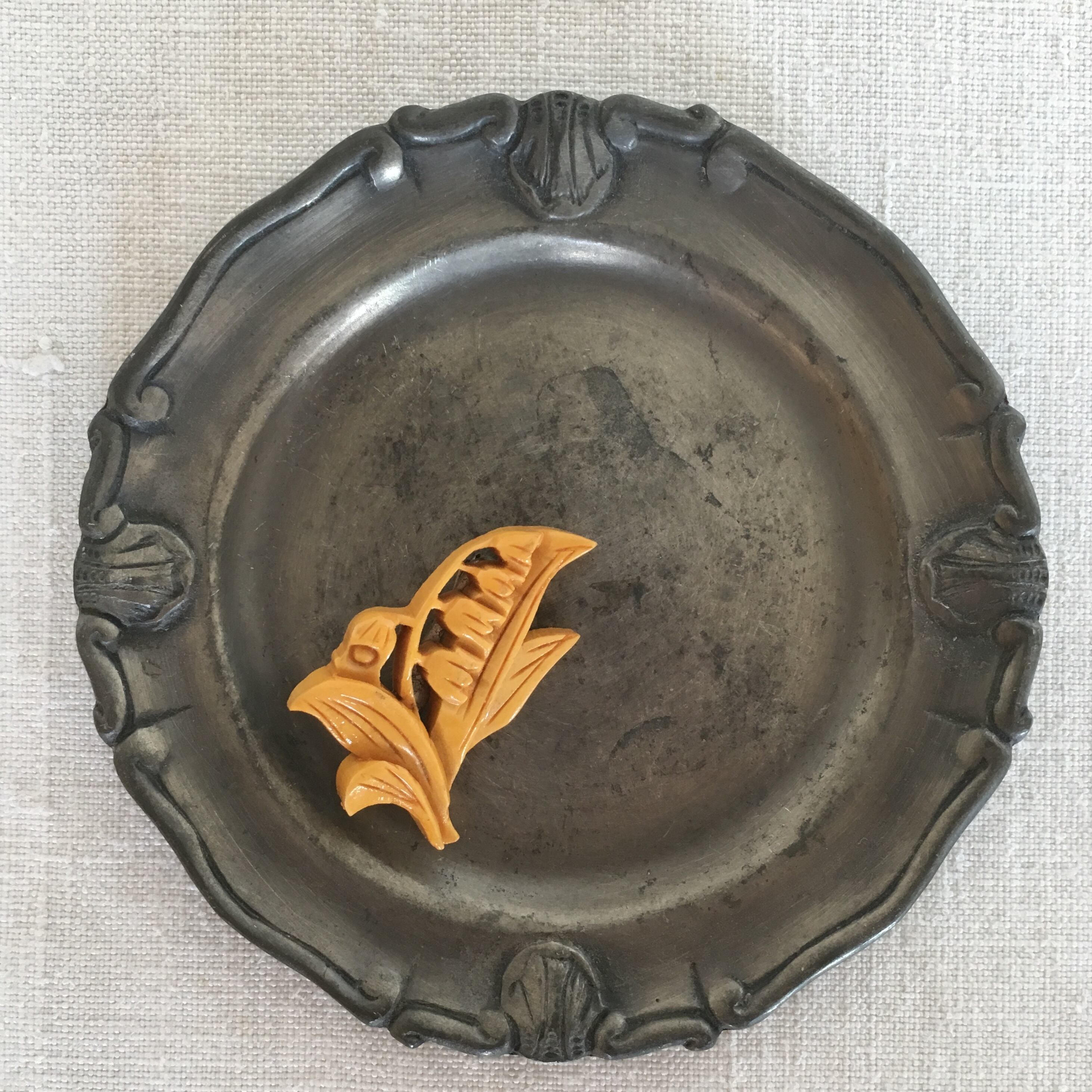 こちらは木彫りのスズランのブローチです